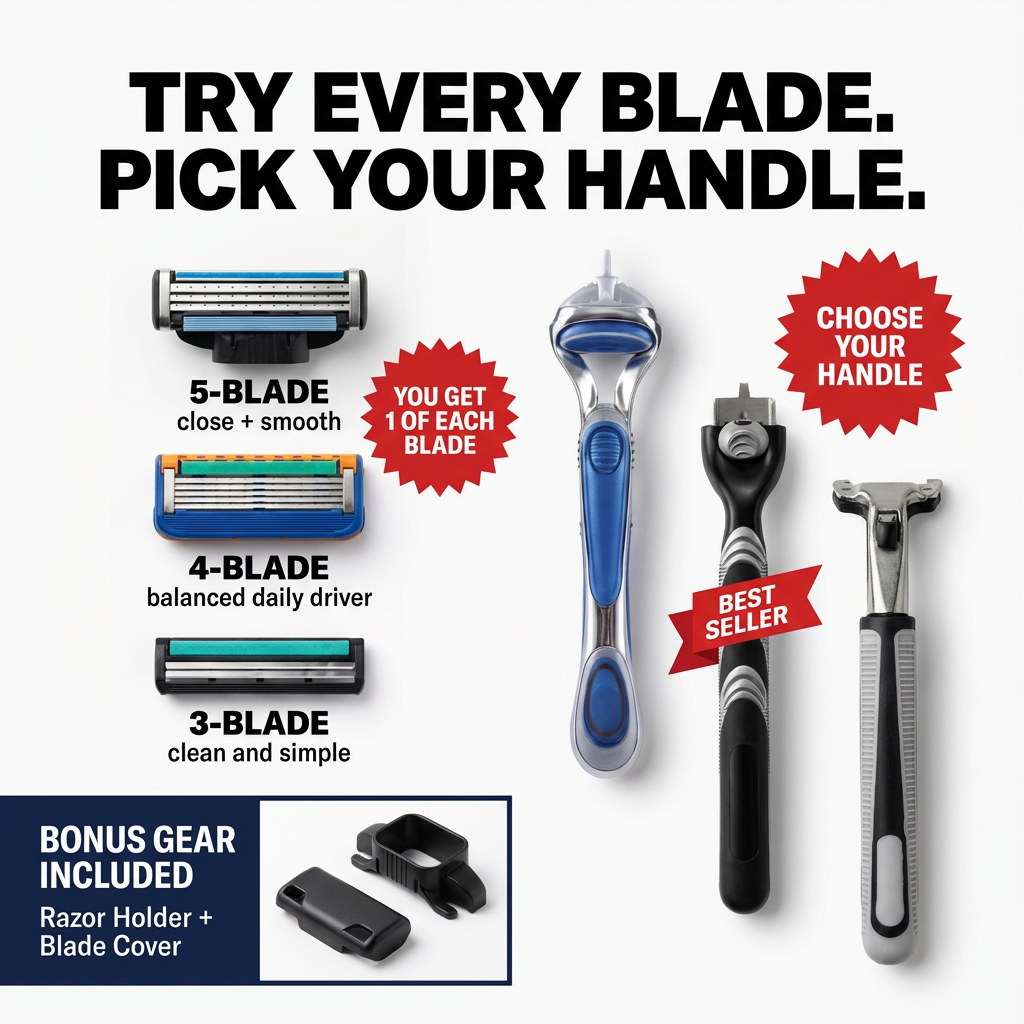 Our razor works with all standard double-edge blades—no proprietary cartridges or subscriptions needed.